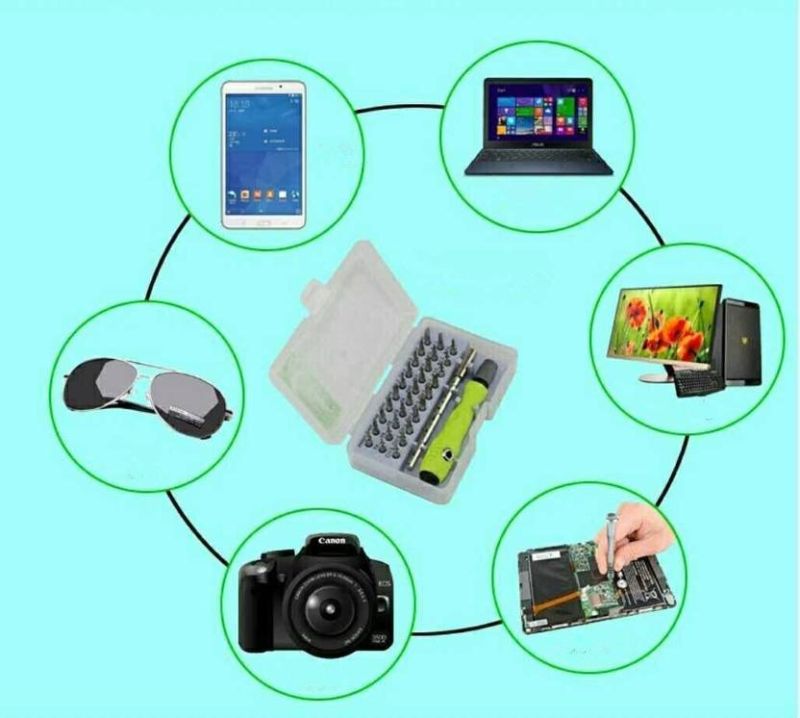 32-piece multipurpose screwdriver and bits set for electronics, laptops, mobiles, and household repairs; includes magnetized ergonomic handle and sturdy compact storage case.