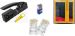 Comprehensive Cat 7 crimping tool kit with ergonomic corded crimper, heavy LAN tester powered by a 9V battery, and 50 transparent RJ45 connectors—ideal for professionals and demanding network setups.