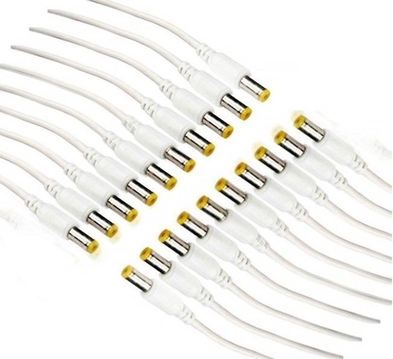 Pack of 20 high-quality DC power male cables with barrel jack connectors; perfect for CCTV cameras, LED strip lights, and low-voltage devices—easy solder, secure fit, reliable power transmission.