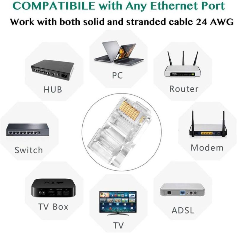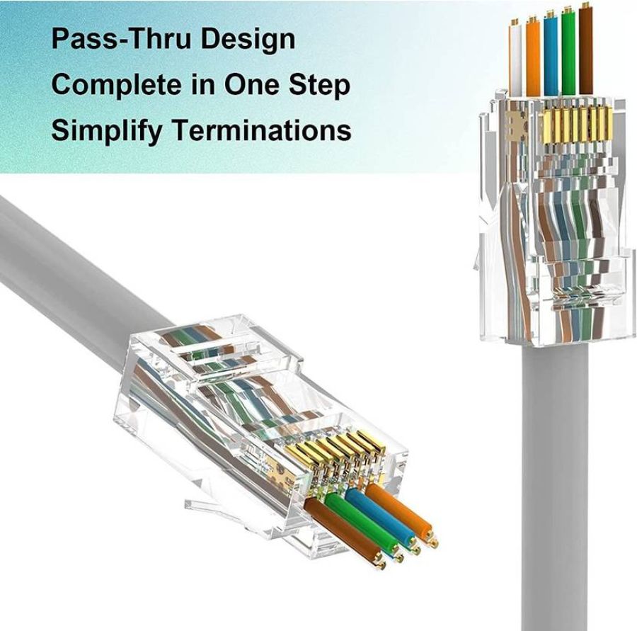 High-quality pass-through RJ45 Cat6 connectors for easy termination of Cat5, Cat5e, and Cat6 cables—ideal for network interface cards, patch panels, and custom Ethernet builds.